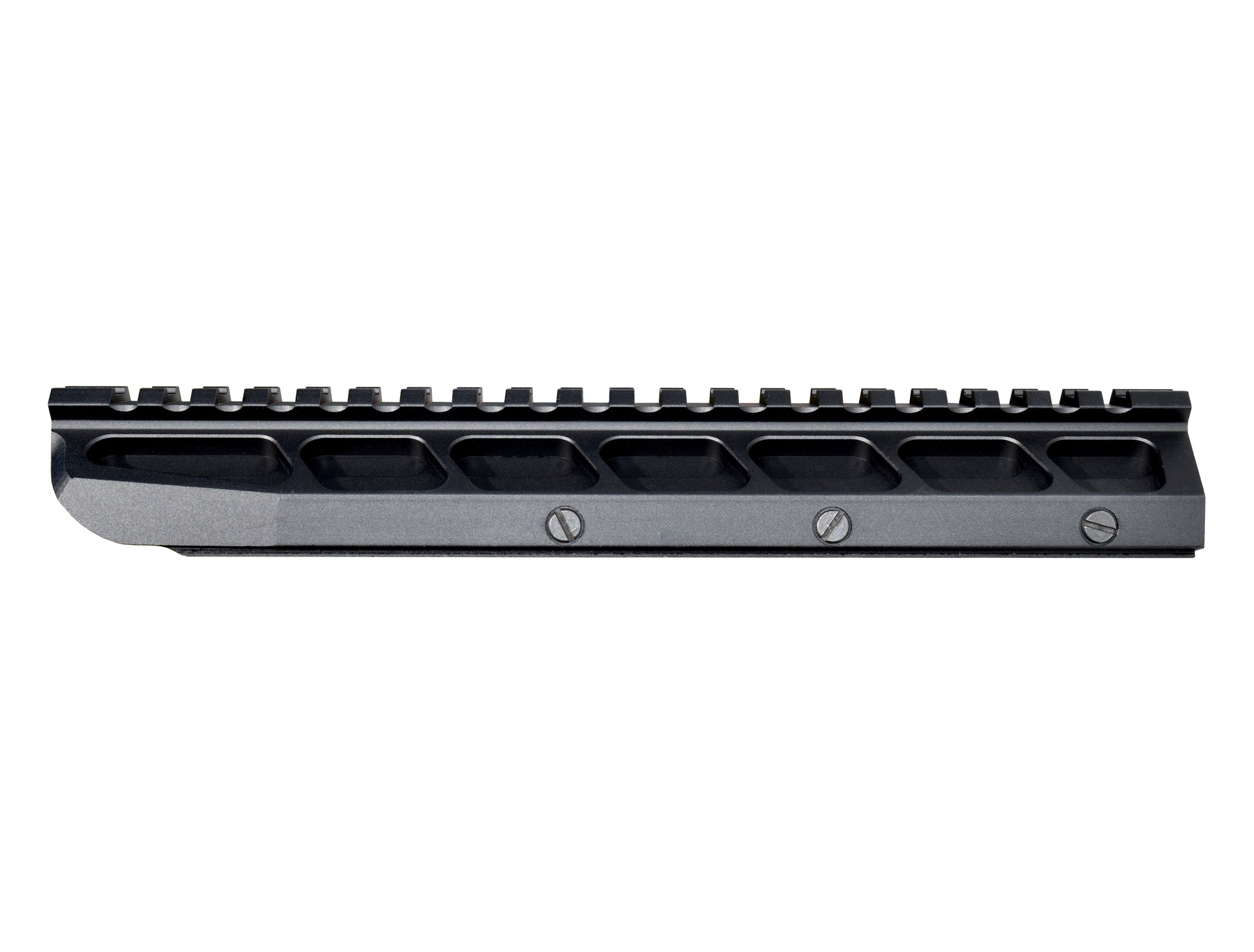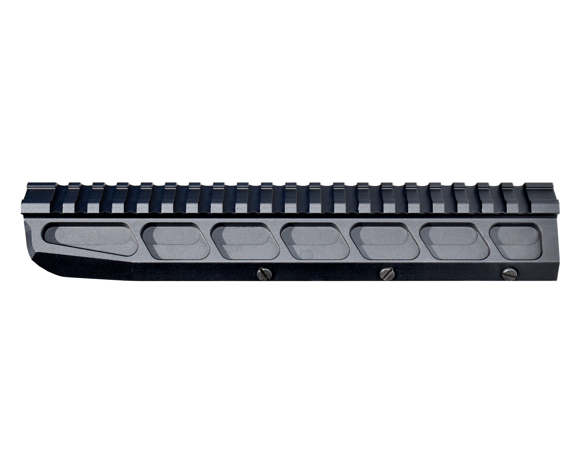 Superior Design with Integral Sliding Rail System for Quick and Friendly Installation. Low Profile Top Picatinny Rail with 21 Slots allowing use of Iron Sight and Scope attachment. Inch and Metric compatible. Length 8-5/8”x1-3/4”x1-1/4”.